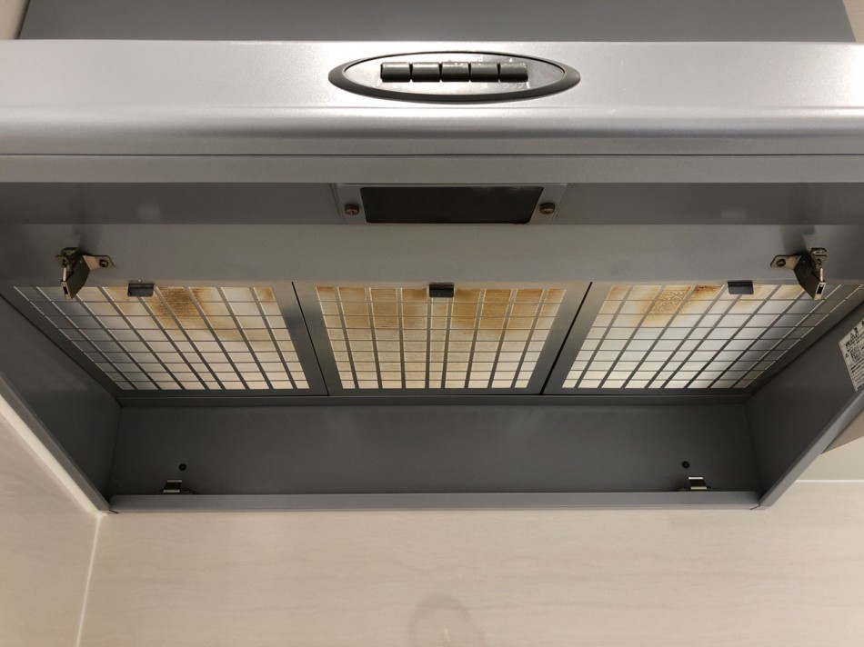 埼玉県三郷市のおそうじ本舗三郷南店です。換気扇(レンジフード)クリーニングのご紹介です。ではビフォーアフターをご覧ください。