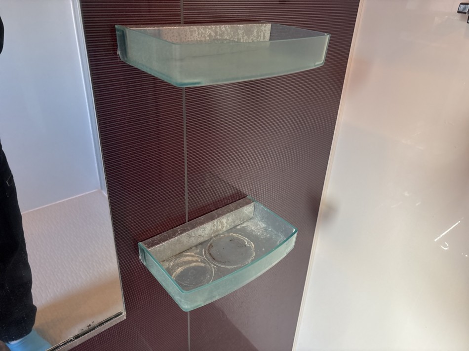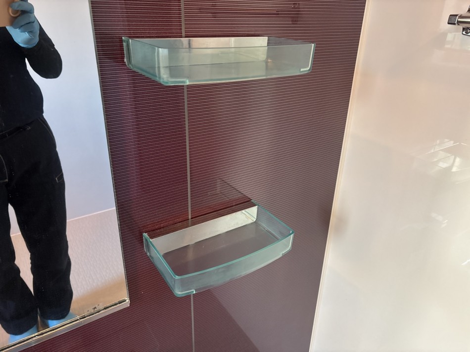 埼玉県三郷市のおそうじ本舗三郷南店です。浴室クリーニングのご紹介です。毎年ご依頼いただいておりますお客様宅の浴室です。壁面が濃いカラーのため水垢が目立ちました。ではビフォーアフターをご覧ください。