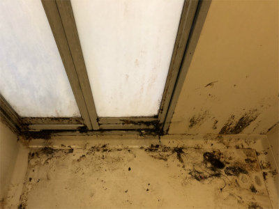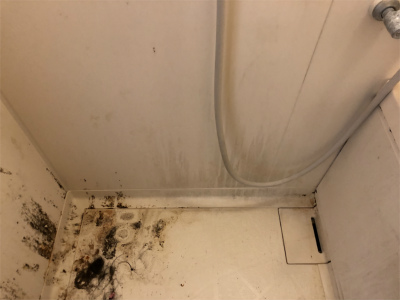 埼玉県三郷市のおそうじ本舗三郷南店です。浴室クリーニングのご紹介です。カビの付着がありました。ではビフォーアフターをご覧ください。