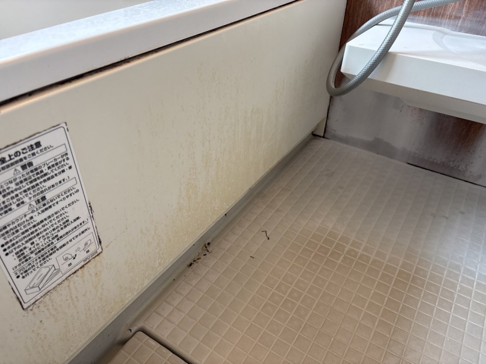 埼玉県三郷市のおそうじ本舗三郷南店です。本日はの浴室クリーニングのご紹介です。毎年ご依頼をいただいておりますお客様です。今回鏡の研磨とエプロンにアブ洗浄のオプションをご依頼いただきました。約3時間半の作業できれいになりました。では、ビフォーアフターをご覧ください。