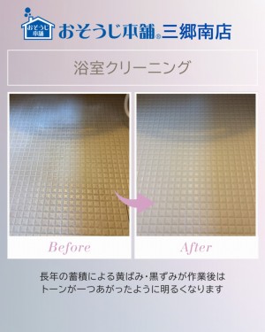 埼玉県三郷市のおそうじ本舗三郷南店です。浴室クリーニングのご紹介です。約1年ごとにご依頼をいただいておりますお客様です。
